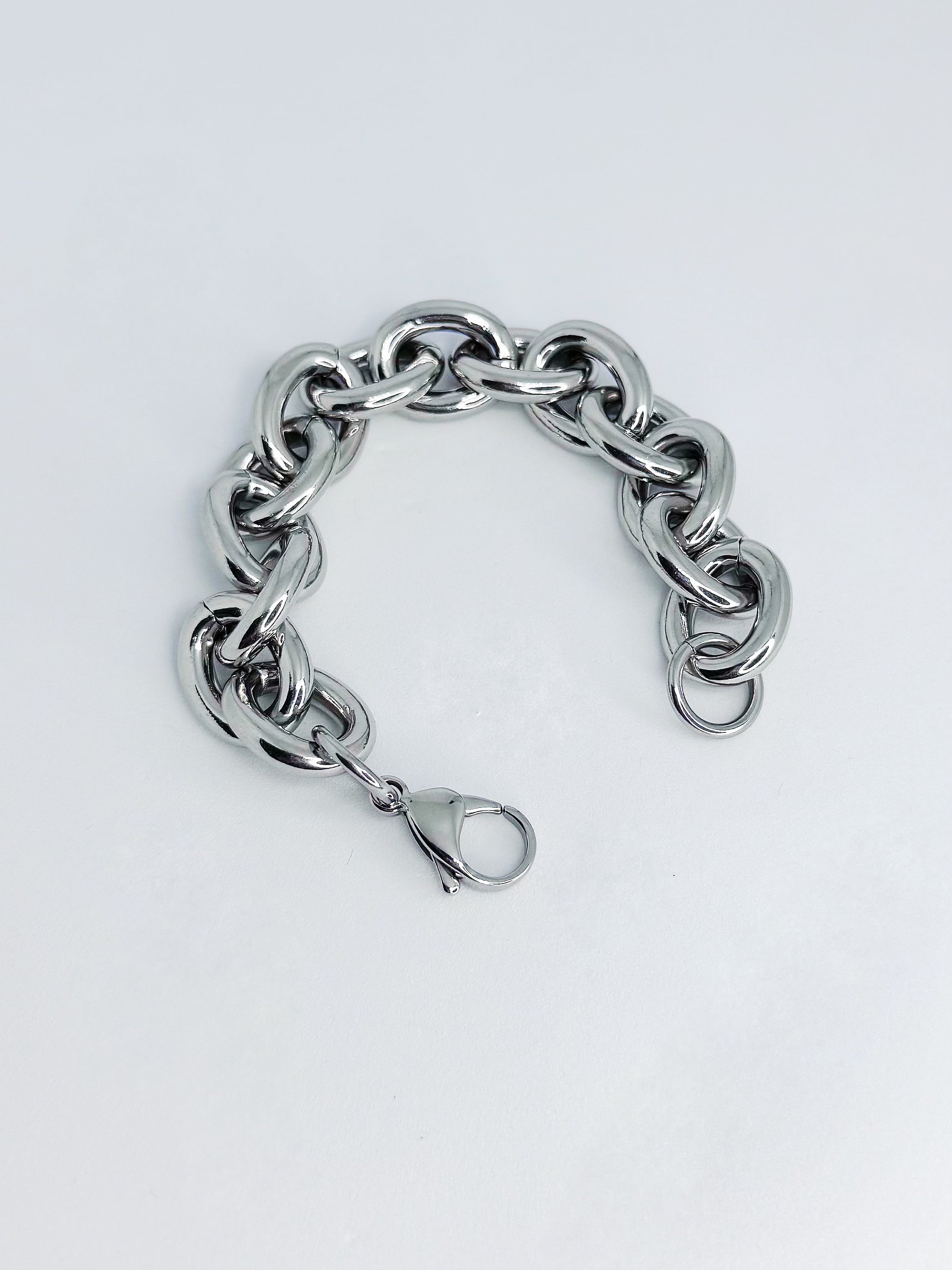 ボリューム感のあるチェーンデザインが特徴的で、コーディネートに華やかさとインパクトをプラスします。