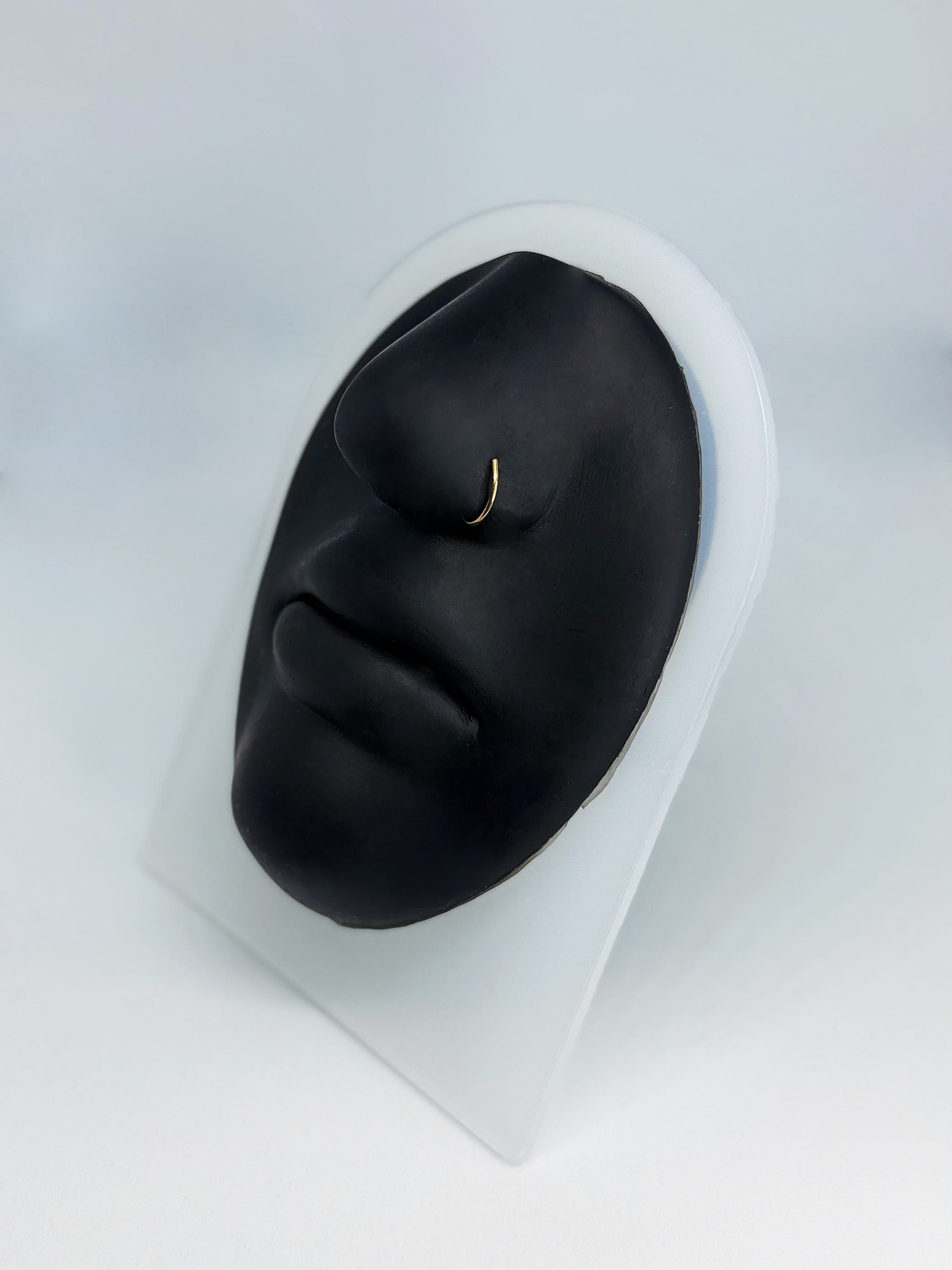 同じ8mmのnose cuff 003よりも少し細めでボールがついていないタイプなので、サイドにも真ん中にも2WAYで使えるタイプ。003より細いので003よりボリューム感を控えめに使いたい方におススメ。
